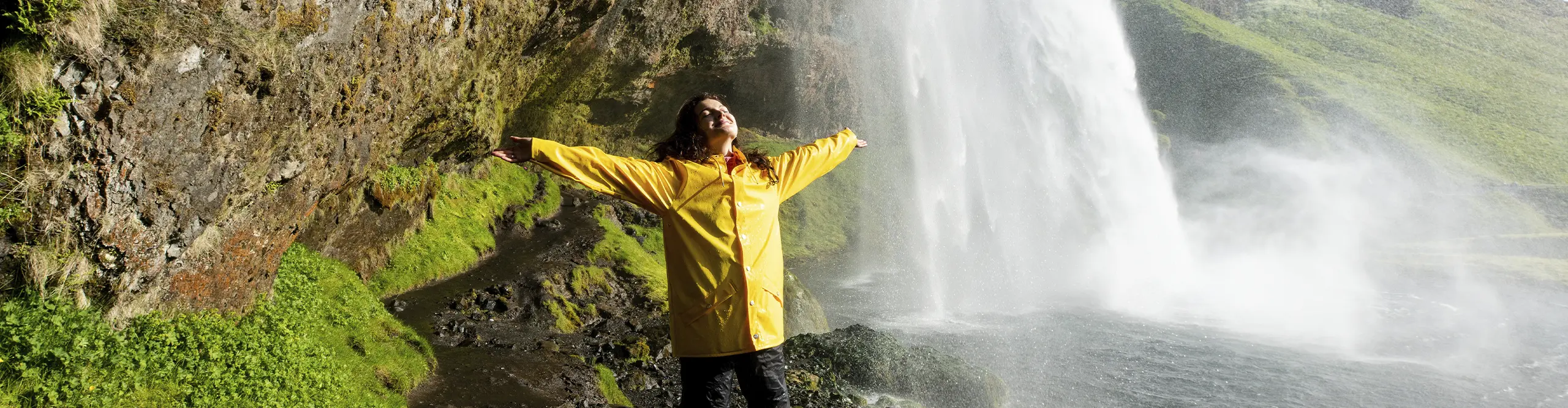 Efter frokost oplever vi to af Islands mest spektakulære vandfald. Skógafoss styrter 60 meter ned fra en klippevæg, og dem, der har lyst, kan tage turen op ad de mange trappetrin for en imponerende udsigt over landskabet. Ved Seljalandsfoss venter en særlig oplevelse – her kan du følge en sti og gå om bag det brusende vandfald, hvor du mærker naturens kræfter på nærmeste hold.