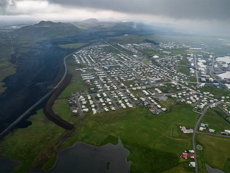Fra lufthavnen kører vi ned mod sydkysten af Reykjanes, gennem den aktive fiskeriby Grindavik, som man måske vil huske fra nyhederne i januar/februar 2024. Flere huse blev ødelagt af lava og byen er stadig udfordret af vulkansk uro. Både i 2021, 2022, 2023, 2024 og 2025 var der mindre vulkanudbrud i området. Den friske lava ligger tæt på vores rute, og når vi kommer nærmere afrejsetidspunktet, afgøres det om, vi kan/skal bruge tid på det.